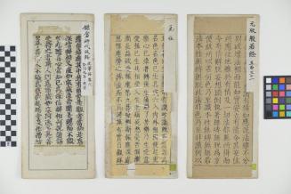 Description44 fragments of Buddhist Sutras, each loosely mounted on paper backing. Some are woodblock print, but at least half are hand copies.Status