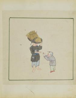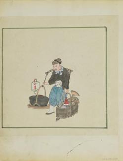 Untitled (Man carrying a basket of bread on his head) (Side A) Untitled (Man with two baskets and a candle lantern) (Side B)