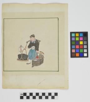 Untitled (Man with two baskets and a candle lantern) (Side B)