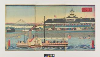 DescriptionScene depicting the Tsukiji Hotel, the First Western Style Hotel in Tokyo, and the Paddle Steamer City of Edo. Mt Fuji in the background.Status