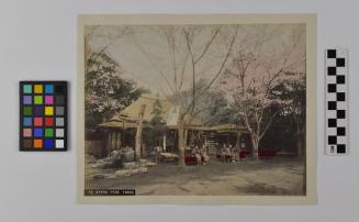 DescriptionThis image depicts five young girls dressed in kimono seated in front of a traditional Japanese building in Uyeno Park, Tokio.Status