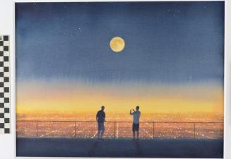 DescriptionTwo figures in silhouette stand under the moon overlooking the Los Angeles cityscape.Status