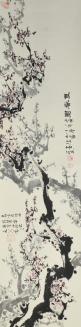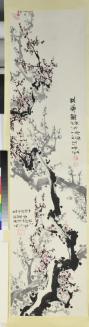 DescriptionScroll depicting a prunus branch with small pink/purple coloured blossoms.Status