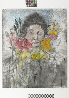 DescriptionPortrait of the artist's wife, Nancy, framed with flowers.Status