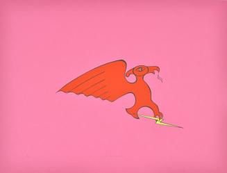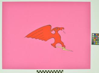 DescriptionRed bird holding lightning in his talons. Pink background.Status