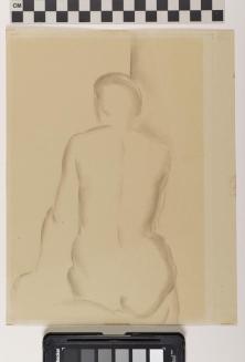 Descriptiongraphite drawing of a seated woman from the backStatus