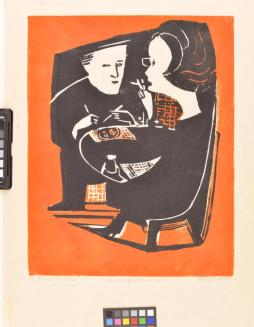 Mediumlinocut Medium Remarks: ink, black, orange