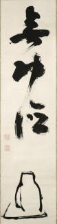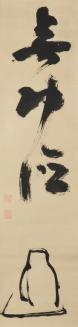DescriptionCalligraphy with suggestion of Daruma below. Mukodoku, 'no merit' is the reply given by Bodhidharma to the Emperor Wu of Liang, in their famous conversation when the question was proferred: 'What merits do I accrue by building monasteries?'
