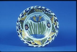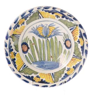 DescriptionColours are from cobalt, antimony, mixed with copper, iron , tin glaze