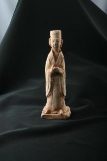 DescriptionFigure of a standing court official in a long robe with his hands clasped together at front. Rests on a roughly rectangular base.Status