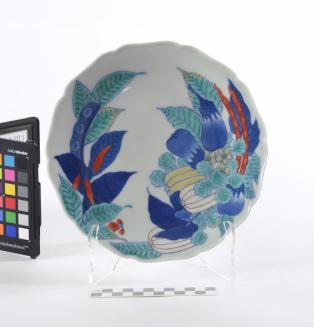 DescriptionThis dish has a vegetable pattern which is identical to a famous 18th Century Nabeshima design.Status