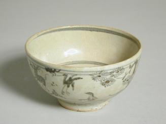 DescriptionGreyish porcelain body, cobalt blue decoration of deer, stork & pine tree.Status