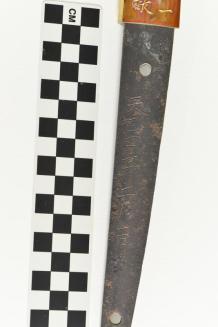 DimensionsOverall (sword; case is 82.2 long; tsuba: 9.0x8.0 cm): 99.4 cm