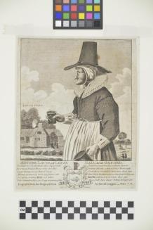 Descriptionsatirical portrait of an ugly woman (English alewife Mother Louse) in peasant dress with white ruffled collar and pilgrim hat; under the title is a poem, the two verses side by side are separated with a coat of arms which is composed of a shield with 3 lice, a crest which looks like an ale mug and beneath the shield the motto "Three Lice Pas Sant" Behind the woman is a building bearing the caption Louse Hall and some students wearing mortar boards.Status